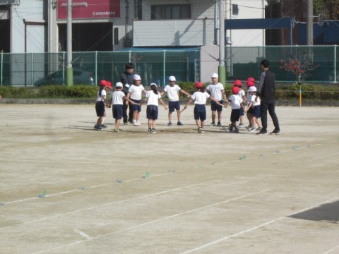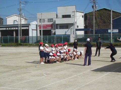運動場での隊形移動もバッチリでした。