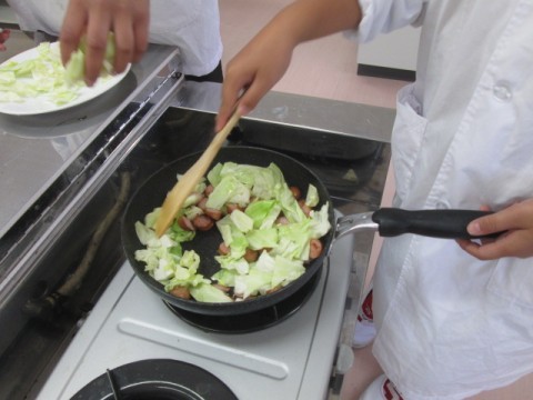 実習を通して、「ゆでる」「いためる」といった調理法についてしっかりと学んでいました。