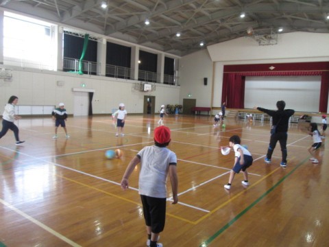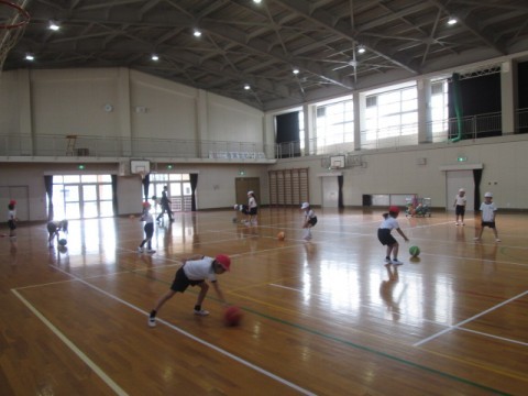 狙ったところにボールを転がすことができるよう、ペアでたくさん練習していました。
