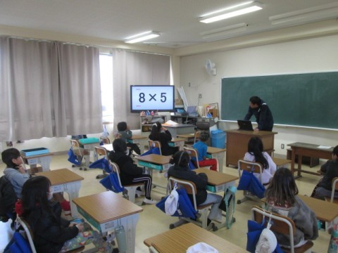 これまでに習った九九の復習をするとともに、九九のきまりについてみんなで考えていました。