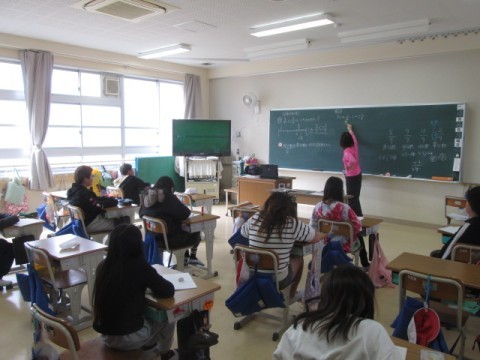 仮分数で表したものを帯分数にして表すにはどうすれば良いか、みんなで意見を出し合っていました。