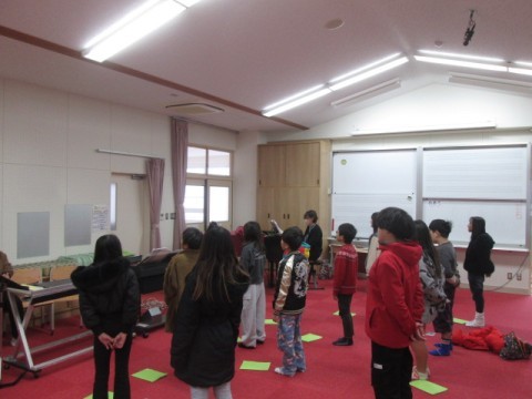 平和音楽会で歌う「365日の紙飛行機」の練習を行っていました。