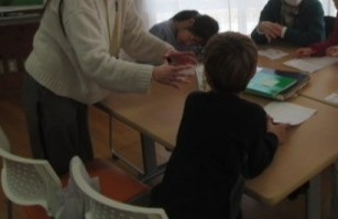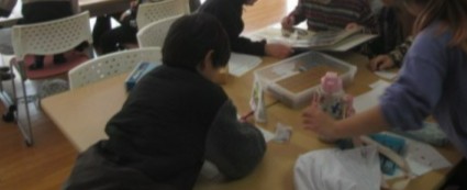 今回は遊びを通して交流するだけでなく、学校とまちのうつりかわりについてのインタビューも行っていました。