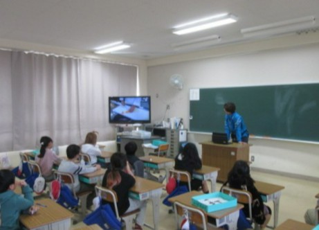 栄養教諭の先生から、給食場で働く調理員さんたちの様子について紹介してもらいました。