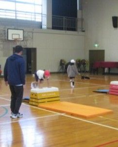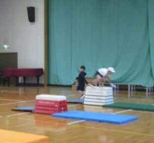 開脚跳びやかかえこみ跳びなど、さまざまな跳び方に挑戦していました。