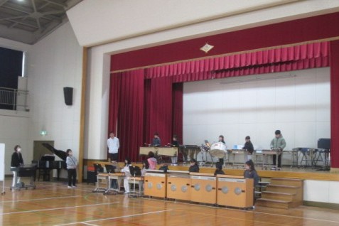 平和音楽会に向け、「聖者の行進」の練習を行っていました。