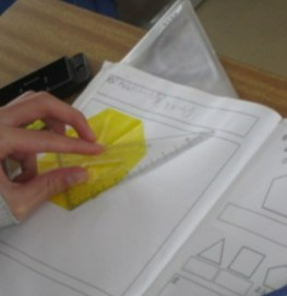 実際に折り紙で多角形をつくりながら、その性質について調べていました。