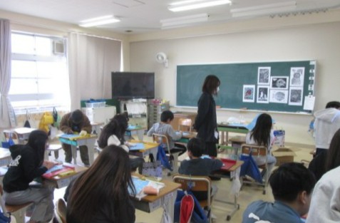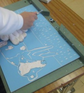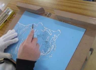 みんな彫刻刀を使って一生懸命彫り進めていました。