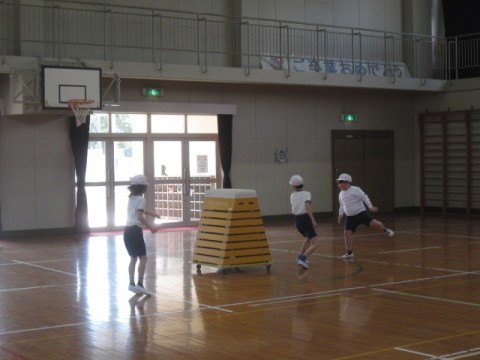 ゴールの跳び箱にボールを当てることができるよう、全力で取り組んでいました。