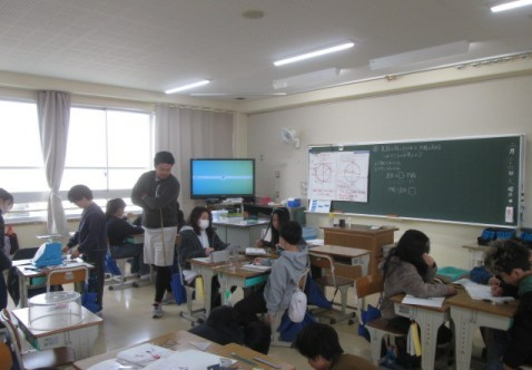 円周の長さを求めるためにはどのような計算をすればよいのか、グループで考えていました。