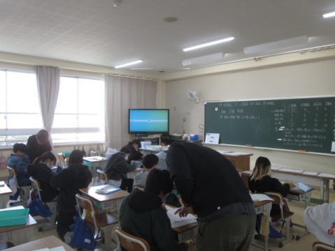 互いに聞き合いながら、これまでの学習内容について確かめていました。