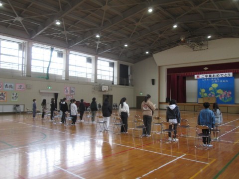 卒業式での歌の練習や、6年生へ送る言葉などを体育館で行っていました。