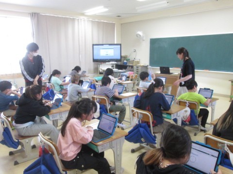 1学期に予定している学力テストに向け、操作方法をしっかりと確認していました。