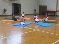 マットを使った運動遊びを行っていました。みんなでさまざまな転がり方を体感していま...