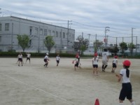 体つくり運動をたっぷり行った後、みんなでドッジボールを行っていました。みんな楽し...