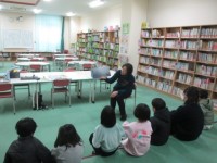 図書の時間に読み聞かせを行っていました。みんないつも楽しそうにお話を聞いています...