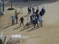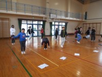3年2組は小型ハードル走をしました。ハードルの隣にはミニハードルを置き、「またぎ...
