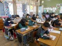 2年2組は漢字の練習中。ドリルやノートに新出のものを書き込んでいます。書き終わっ...