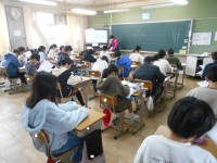 5年1組は外国語の授業が終わったところでした。本日の学習の成果は、この表情からも...