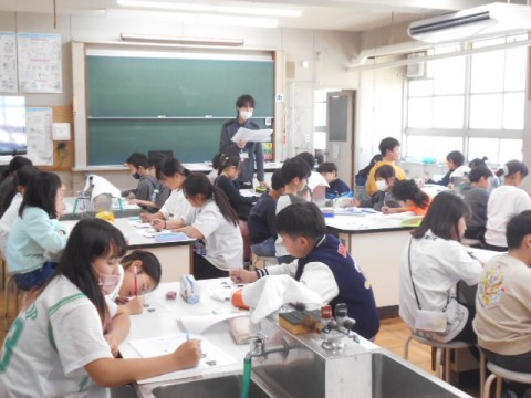 はじめは4年生までの復習をし、その後理科室の使い方についてみんなで確認をおこないました。