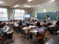 昨日の2年生に続き、今日は3年生が栄養教諭の先生から、給食について教えていただいています。