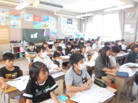 5年1組は算数の時間でした。