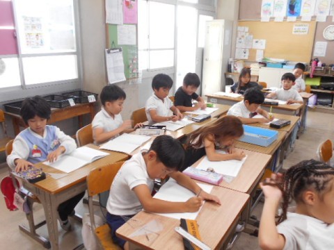 今日は直角三角形をノートに書いて、どの部分が直角になっているかをみんなで確認しました。