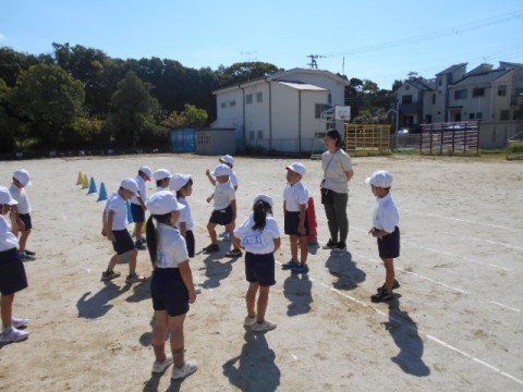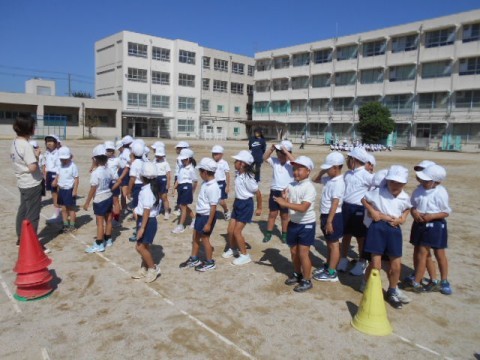 1年2組は準備体操を終え、今日の学習に入るところでした。