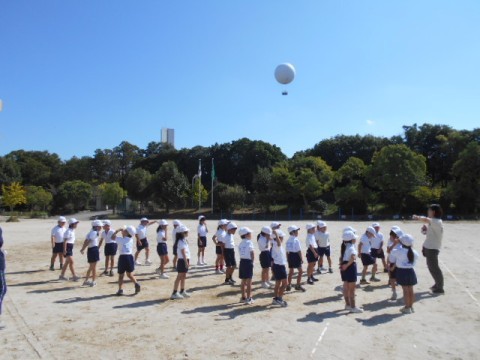 今日は見事な秋晴れの中に白い気球。