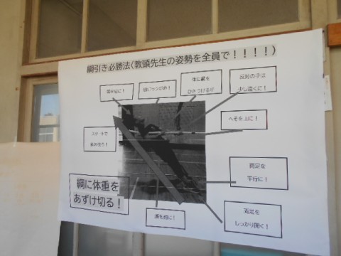 何やら2枚の模造紙には綱引きの姿勢が載った写真が。