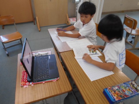 2年生は2人で一緒に音読をし、物語をまとめています。