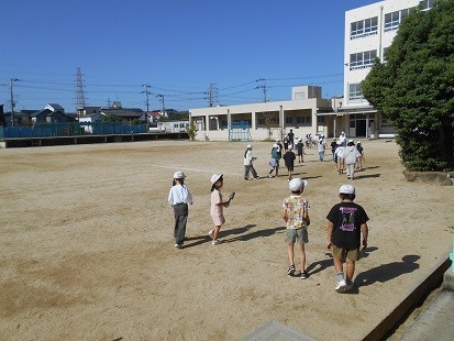 理科では,日なたの地面の温度と,日かげの地面の温度の違いを測定するために運動場に出ています。