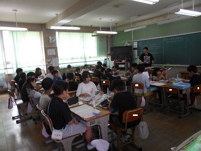 理科では,注射器に空気と水の両方が入っている場合,中の物質がどうなるのか,実験しています。