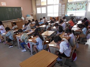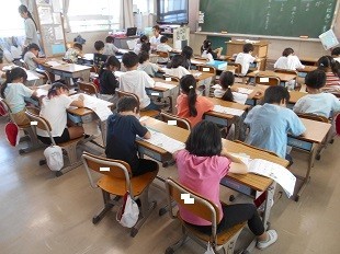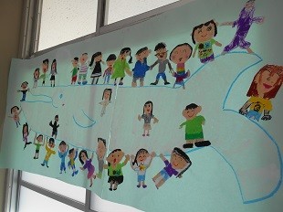 教室には,大きな「くじらぐも」が掲示されています。みんな,いい表情をしていますね!