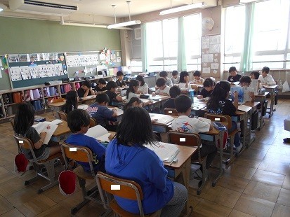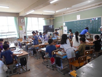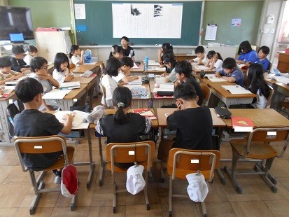 国語では「ちいちゃんのかげおくり」の音読をしています。読んでいる箇所を指でなぞりながらの音読です。