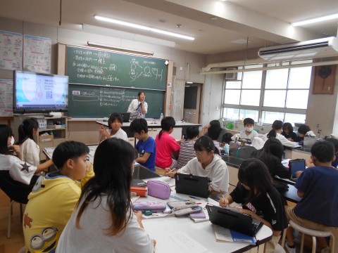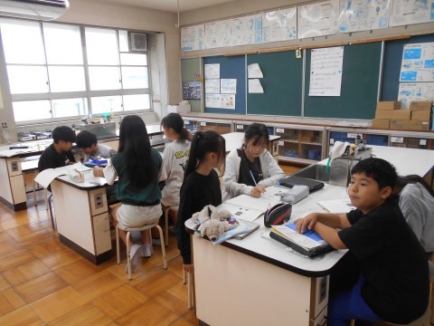 「ヒトの誕生」について学んでいますが、今日は班ごとに疑問に思ったことを調べていく活動をしていました。