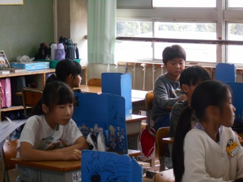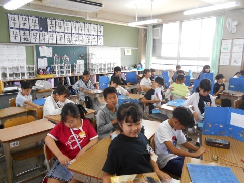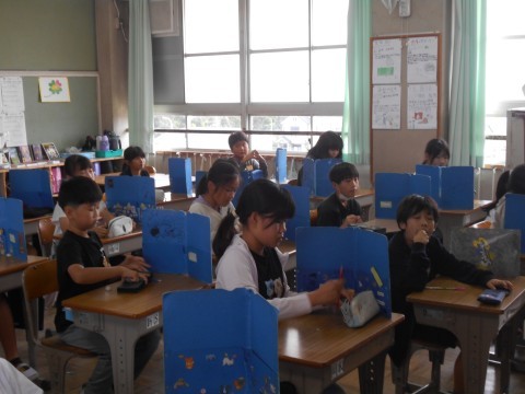 4年2組は今から「空気や水をとじこめると」の確認テストのようです。