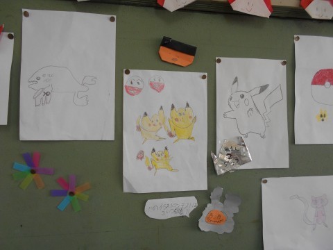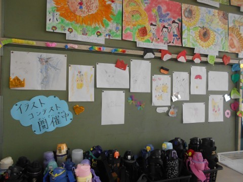 3年3組の背面掲示板には、イラストコンテストが開催されています。