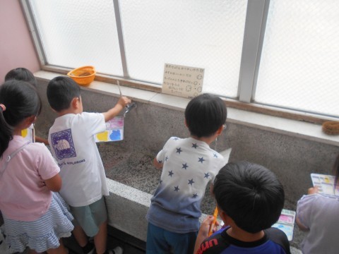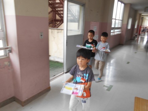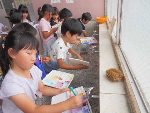 1年2組では、お昼から初めて絵の具道具を使ってみました。