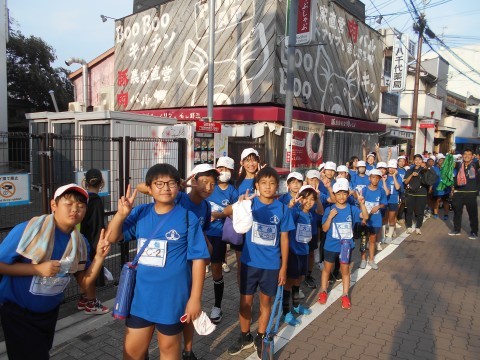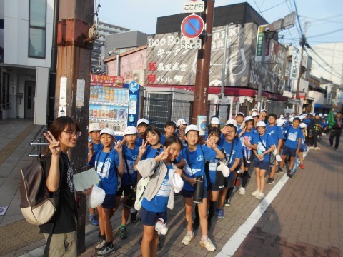 朝と同様、金岡競技場から帰る学校も堺市駅で待ち構えていると、遠目から青色のユニフォームが帰ってきました。