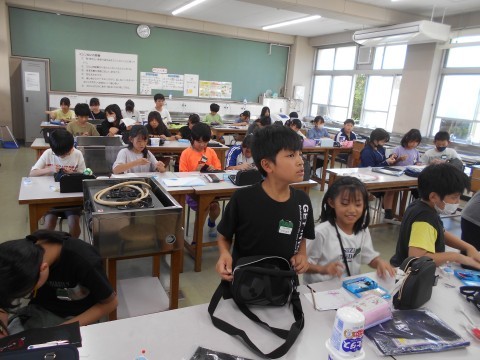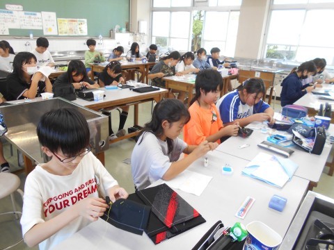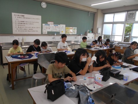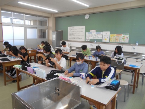 5年1組はミシンが終わって裁縫をしている場面でした。