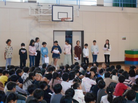 全校のみんなから大きな拍手をもらいました。