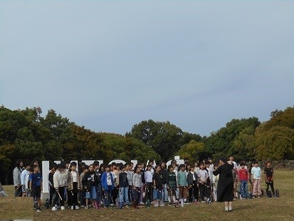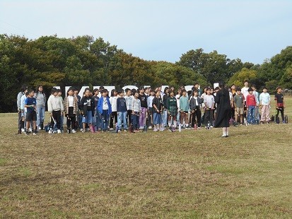 大仙公園の芝生の広場で,大きな声を出して練習しました!