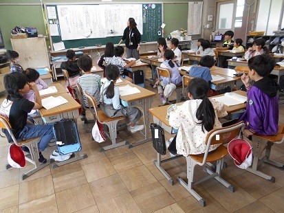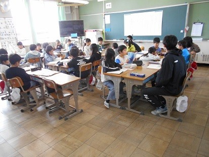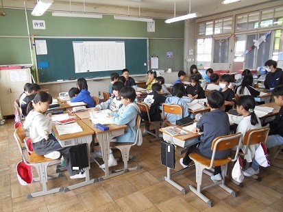 国語の学習をしています。「ちいちゃんのかげおくり」をしっかりと読んでいます。