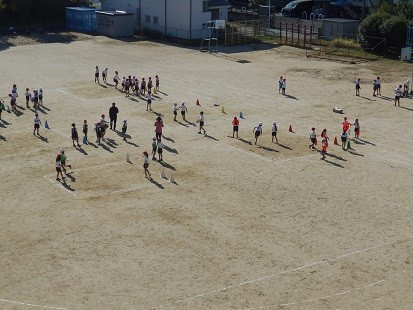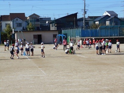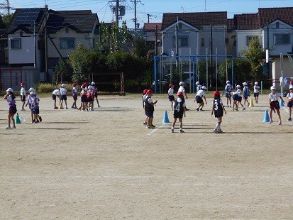 2年生は学年で体育の学習をしています。