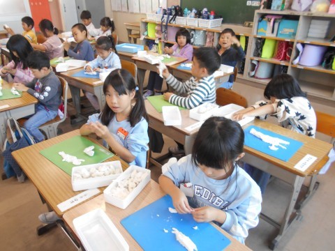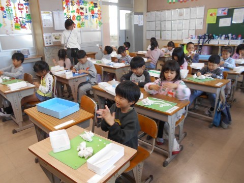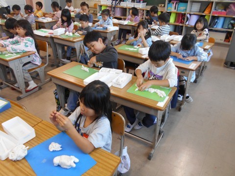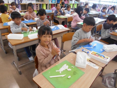 以前学習した「クジラぐも」を再現しています。器用にちぎったり、くっつけたり。