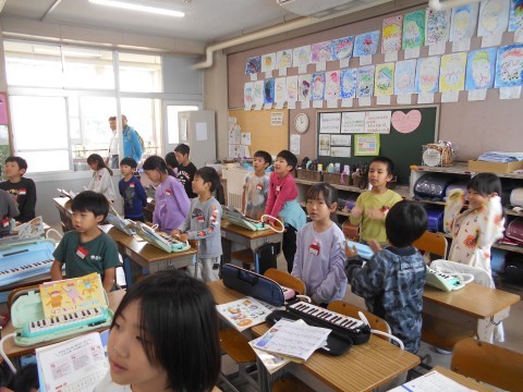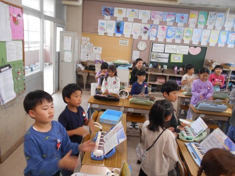 2年2組は「イルカはどんぶらこ」を歌っていました。