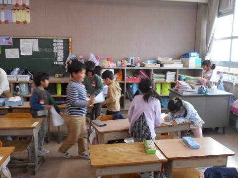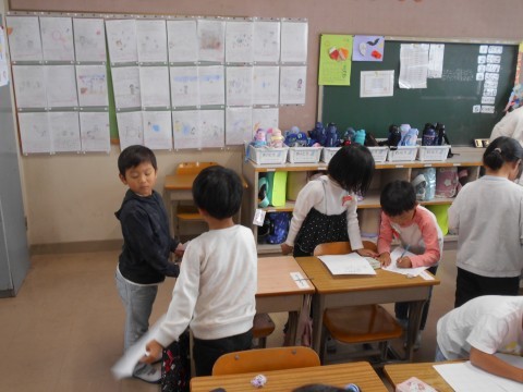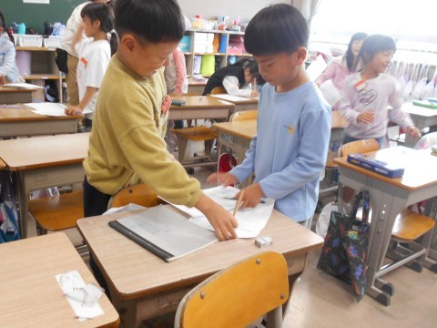 廊下を歩いていると、1年2組から「ジャーンケーン~」といっぱい叫ぶような声が。