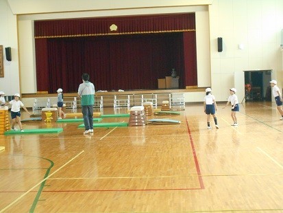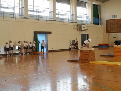 跳び箱の学習をしています。上手に跳べていますよ!