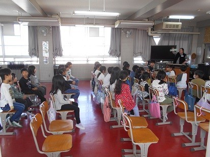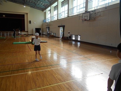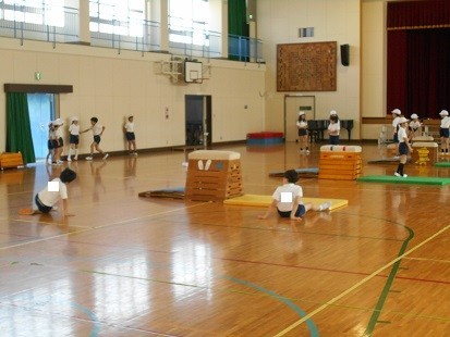体育では跳び箱運動をしています。閉脚跳びをしている子どももいました。すごいね!